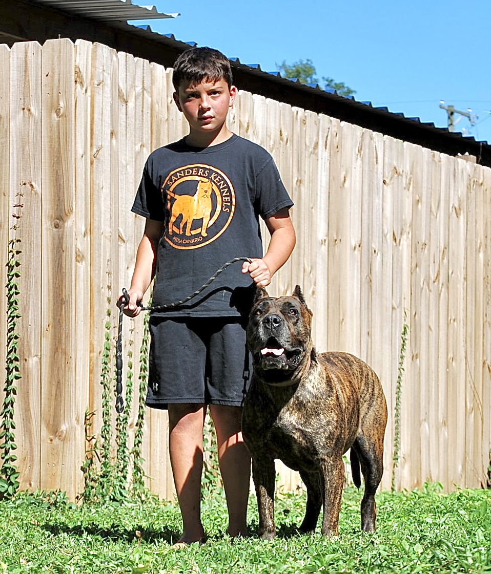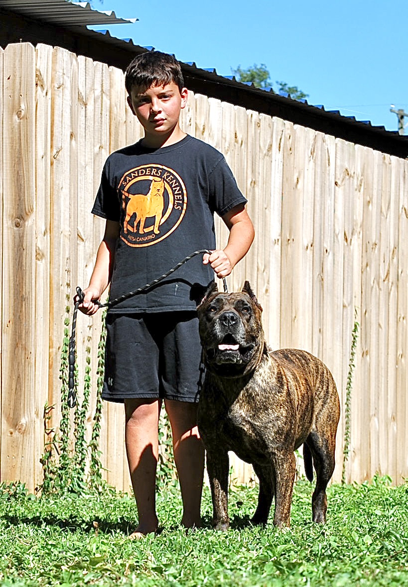 Star is a brindle female weighing 125lbs and 25” at her withers. Star is a very confident dog and is naturally territorial. Star is trustworthy around children and in public. Star is a great producer! Please call or go to our upcoming litters page to reserve your puppy.